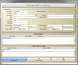 - New Contact opens the Contact Entry form and sets it to New Record allowing data entry for all contact information.