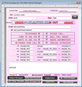 Today we are going to examine the code on the Review Message Form of our TC Message Center application. On this form there are two text boxes which display the current state of the data view and also are used to process changes made by the user to change the data view. At the bottom of the form are two Multi-State Buttons. Button one controls the filter for the data selected by user name and Multi-State button two controls the ascending or descending order of the selected data. See Below: