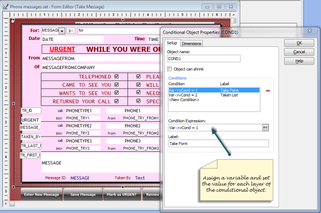 Currently we only need two layers for our object, the first of which holds the Take Message objects as shown above and the other a browse list showing all messages taken by the user and all messages for the user.