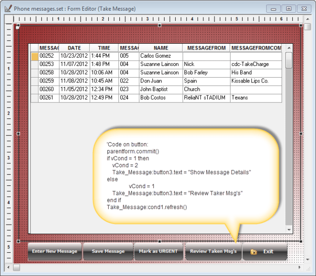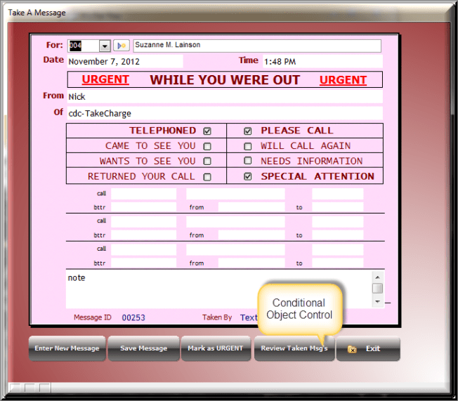 The form we will be using for our demonstration today are the Take Message form and the Administrator form