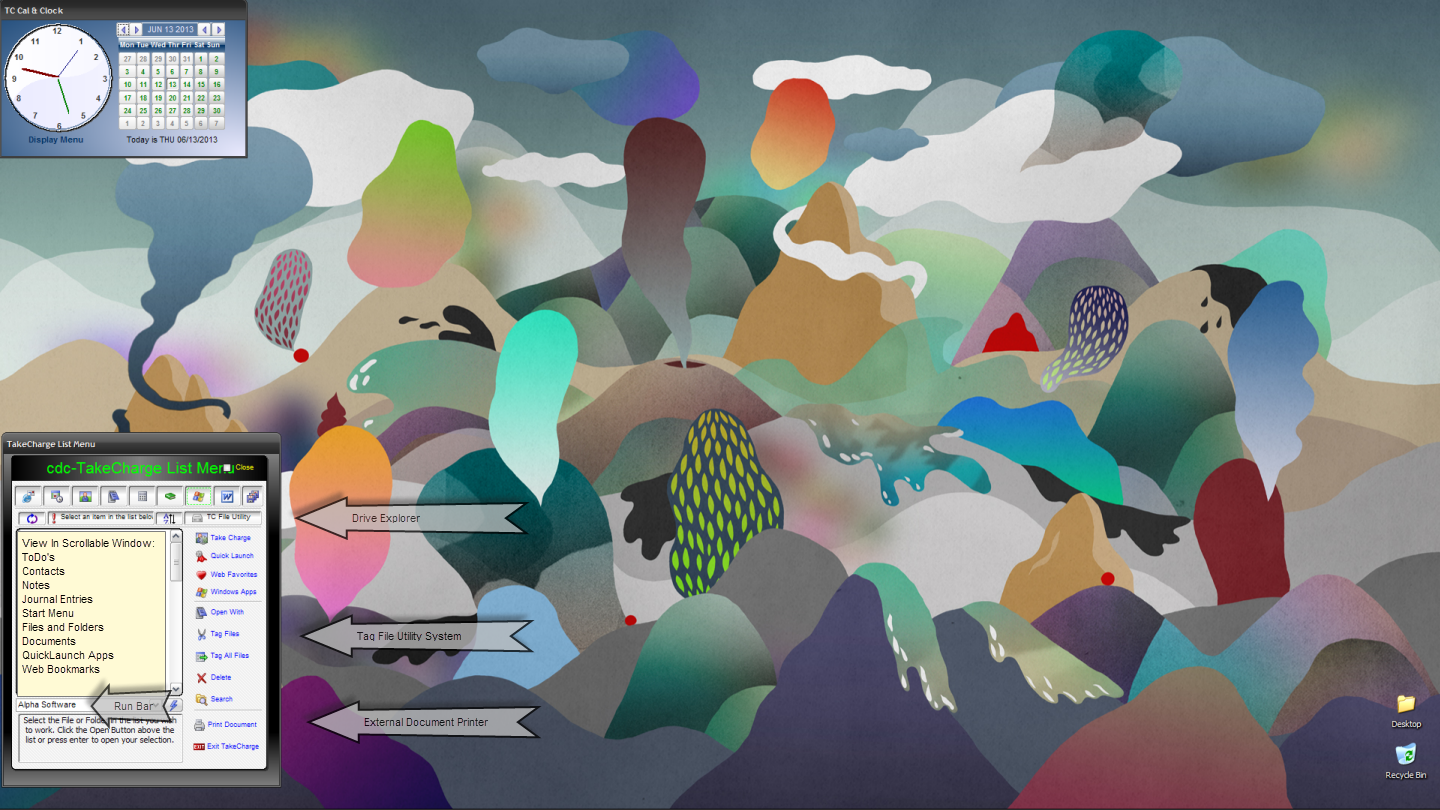 Our desktop will provide quick access to all Windows free Desktop software and through a setup wizard allow the user to substitute free or paid for software for each of Windows desktop apps. The setup wizard will provide a link where possible to the homepage of software we like, (but do not endorse!), so the user can make an informed decision for themselves. I will now list some of the apps many people use