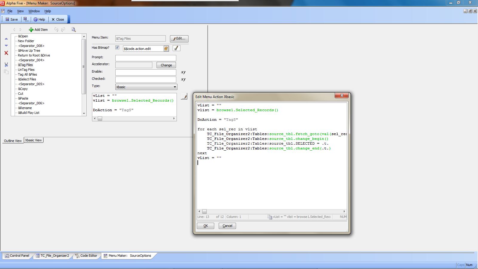 This code is attached to our Right Click Menu option Tag Files (see below)