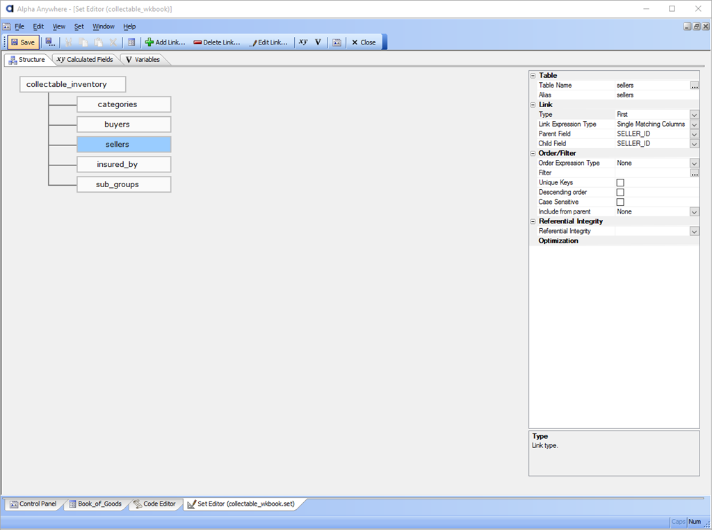 What this set design gives us is the ability to enter all information needed in our collectable inventory table with lookup links to information in the supporting tables and the information can be queried and ordered using values from any of our tables. This will become clearer in the form design. Lets look at the new form.