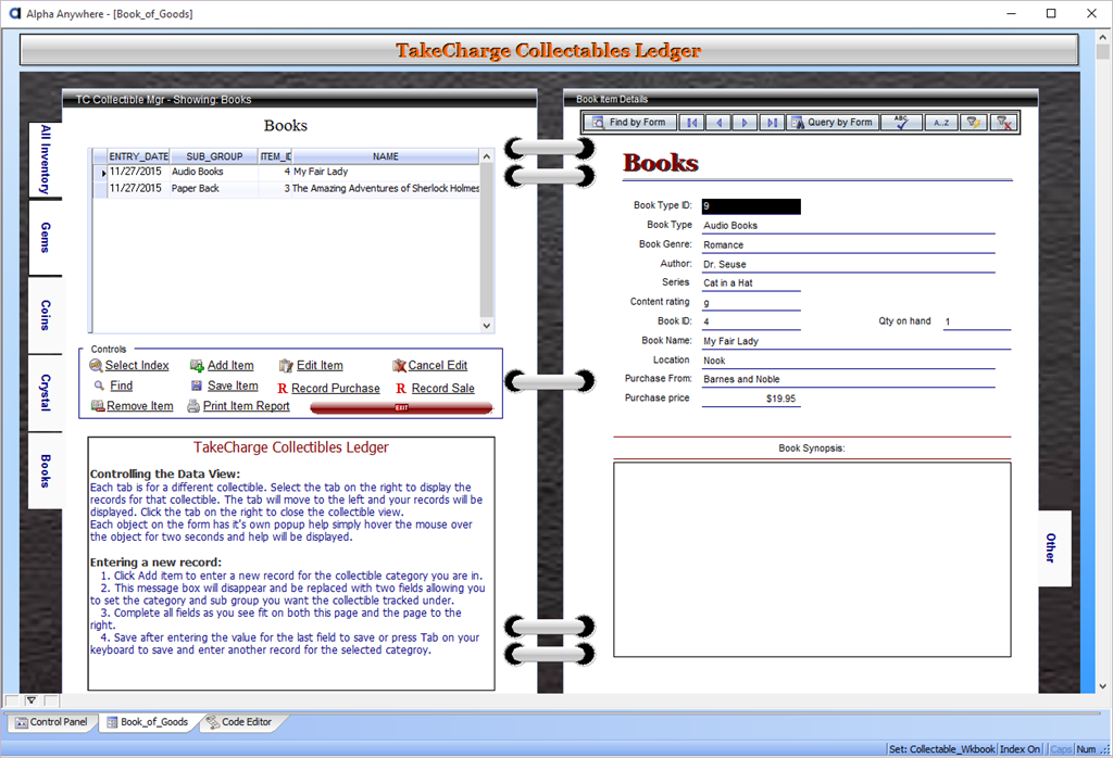 Today we are starting our blog off with a short video which demonstrates the form and function of our collectibles database up to this point. Watching the video will help you understand how and why I wrote the object code as I did. Sit back relax and enjoy the show.