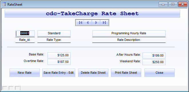 Our form has changed slightly from the original image (6 months ago). Our form now tracts a rate level and a Work description field. In addition, we added some form control buttons to the bottom of our dialog.