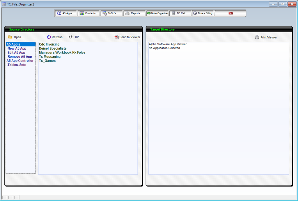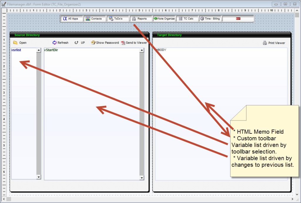 ListState = "ADB" ui_freeze(.t.) dim SHARED SubjectList as C hBody.text = "Alpha Software App Viewer"+"<br>"+"No Application Selected" xbasic_wait_for_idle() DocView = <<%str% Select A5 Apps to See a List of current A5 Applications %str% parentform.commit() SubjectList = "" SubjectList = "A5 App's"+crlf()+"-New A5 App"+crlf()+"-Edit A5 App"+crlf()+"-Remove A5 App"+crlf()+"A5 App Controller"+crlf()+"-Tables-Sets"+crlf() if vwatch =1 then vwatch = 0 else if vwatch = 0 then vwatch = 1 end if ui_freeze(.f.)