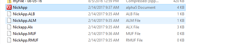 Below is an image of the A5 files for an app I created as a test in the Project Manager (NickApp).