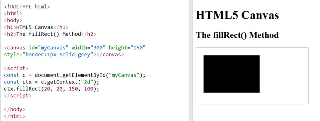 Now lets look at drawing shapes. W3Schools shows this example;