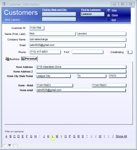 I have also started on the customer database