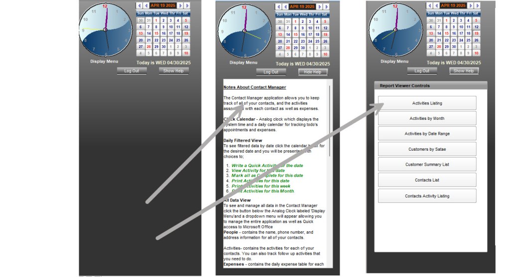 I also have added two navigational buttons above the left side menu. also of note the calendar buttons now show a red day number if appointments are scheduled for that day.